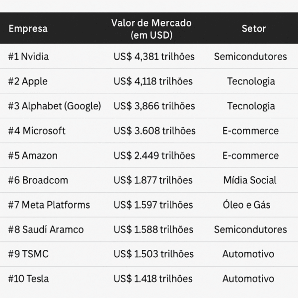 As 10 Empresa Mais Valiosas do Mundo em 2025